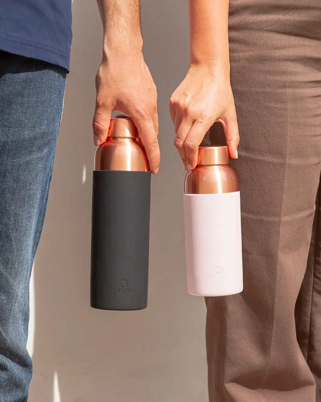 Guess what? When you choose our Paani Water Bottle, the silicone grip sleeve comes along for the ride – no extra charge! It's like getting a two-for-one deal on style and protection. Oh, but if you're more of a minimalist, you can go for the "copper bottle only" option – no hard feelings.