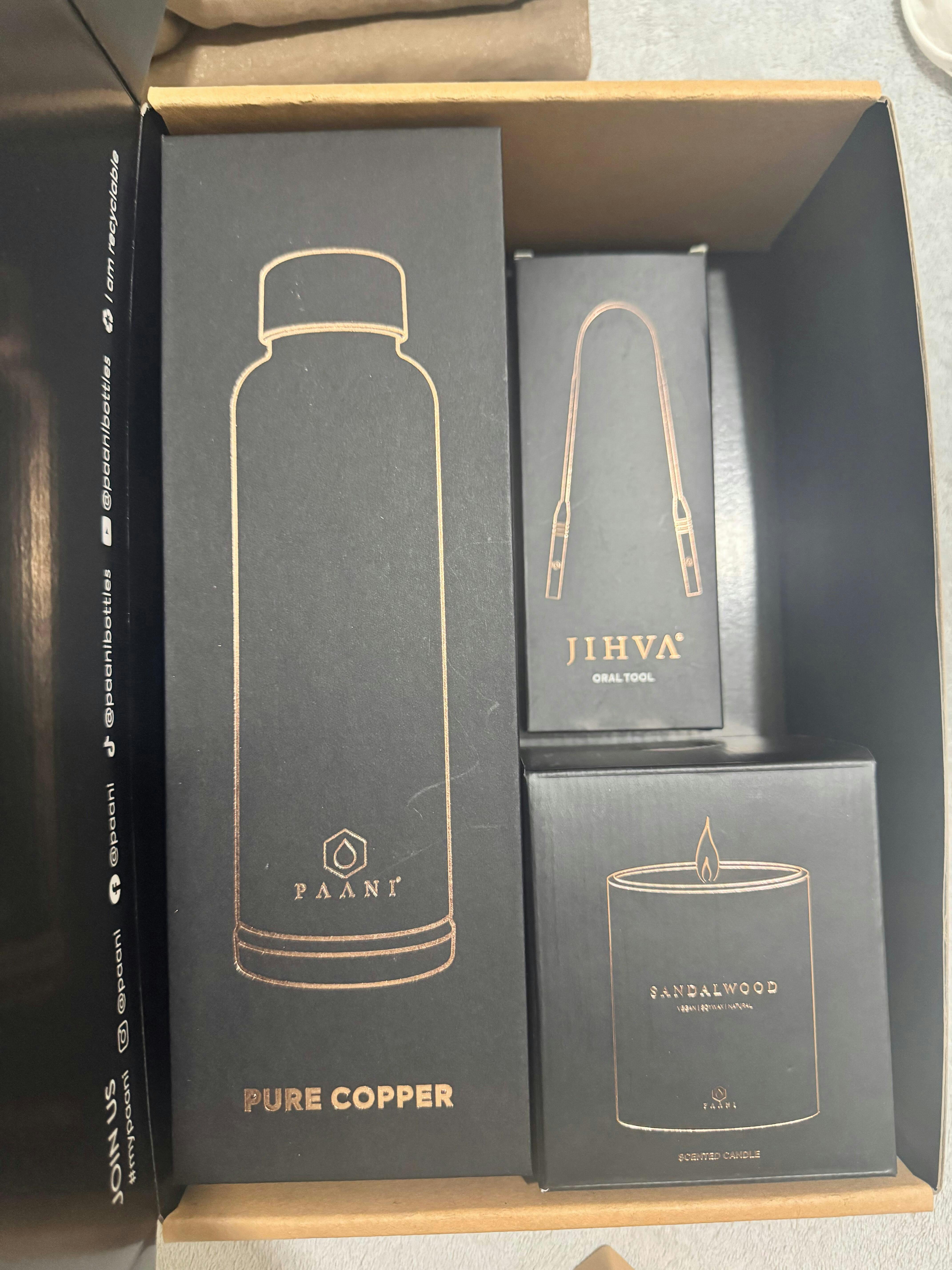 Our handcrafted 700ml Paani Bottles are made tested to be 99.9% pure copper and have been lab-tested to kill 99.9% of bacteria. Each bottle is carefully finished with a protective outer coating, while the interior remains uncoated—ensuring you enjoy the natural benefits of pure copper with every sip.